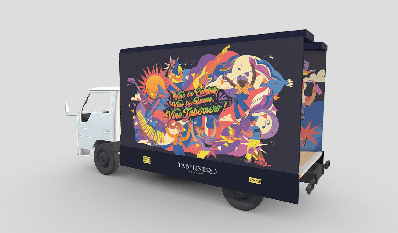El camión actúa como una valla móvil en las rutas personalizadas por el cliente.